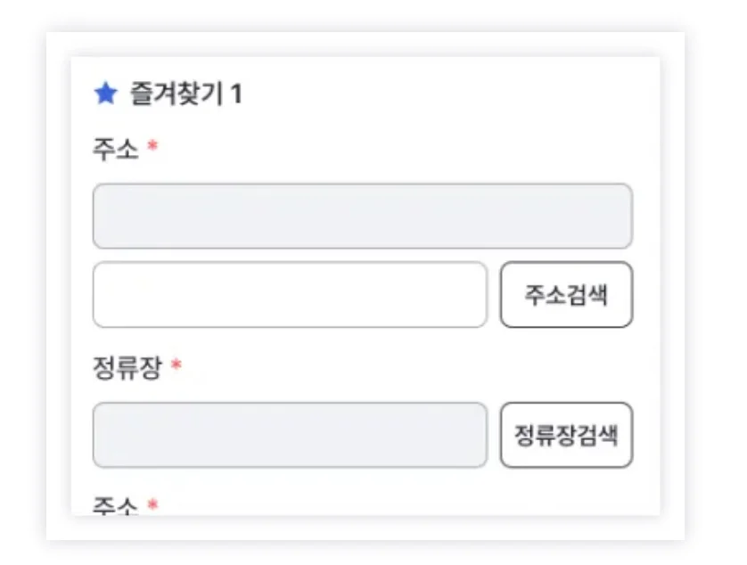 매번 목적지를 입력하지 않고 즐겨찾기 기능으로 편리하게 이용할 수 있습니다. 즐겨찾기를 등록하면 출발 / 도착 버튼을 누르지 않아도 마일리지가 적립됩니다.
